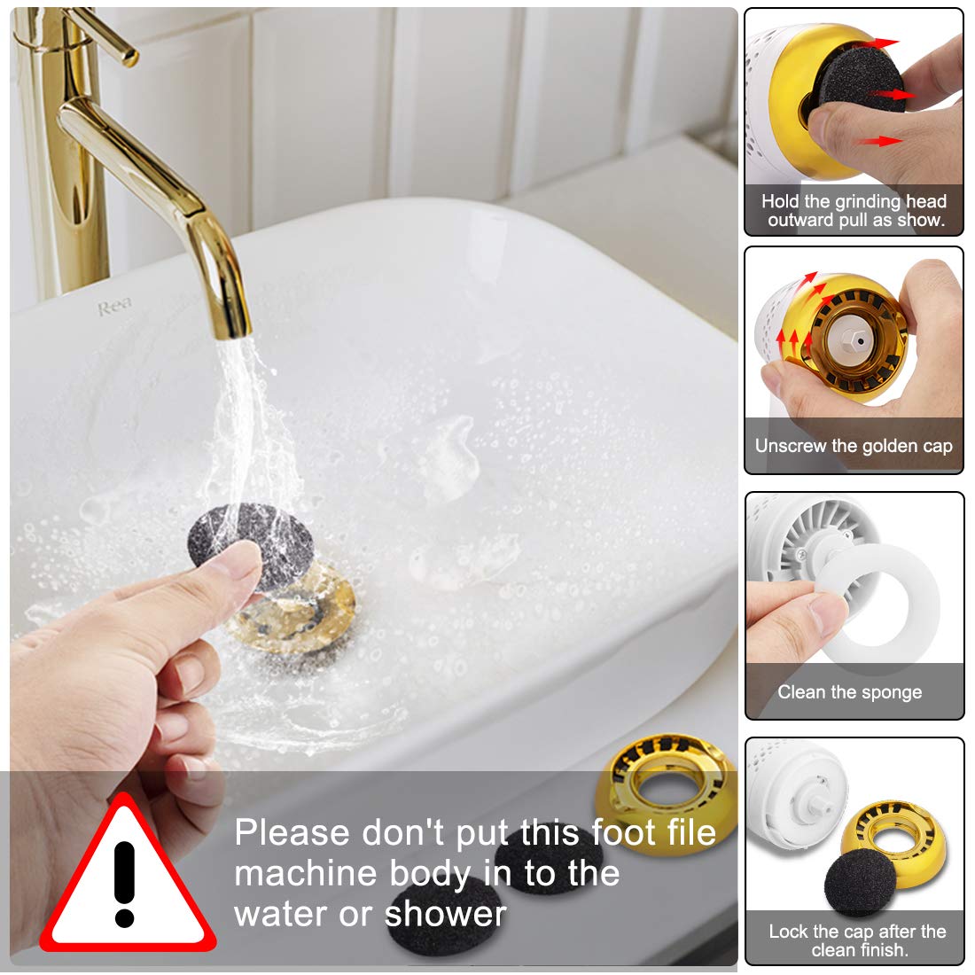 ✔Convenient & Clean Foot File Callus Remover - This foot file adopt advanced vacuum suction design . It can absorb the dead skin quickly while grinding, keep your floor clean,and you don't worry about the debris falling on the ground,Mess-free automatic vacuum, solve the trouble of powder shavings and dust.